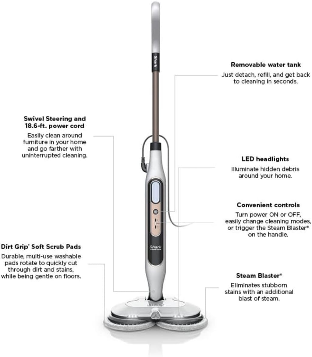 Designed with an ergonomic adjustable handle and lightweight body, this mop allows effortless cleaning without straining your back or arms. The long power cord provides great reach for larger spaces.